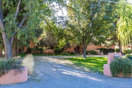 Nestled not far from this historic village of Mesilla, the incredible estate on 1.22 acres is one you won’t want to miss. Custom designed by owner/architect, this home is filled with luxurious upgrades and amenities. From the moment you arrive via the circle drive and walk up to the covered entry, you know no expense was spared in construction. The Living/Dining area is oversized with wood floor and artist-made fireplace mantel in Living room and built-in cabinetry/buffet with leaded glass in the Saltillo tiled Dining Room. Both have glorious glass walls with views to three unique patios, each with its own privacy and charm. The gourmet kitchen has a huge island, 2 pantries, built-in desk, upgraded appliances and an adjacent utility room which is filled with shelving, storage and laundry area. The two bedroom suites upstairs each have a shower and walk-in closet and the guest bedroom downstairs has an adjacent full bath and door to secluded patio with waterfall fountain. The Owner’s Suite downstairs has