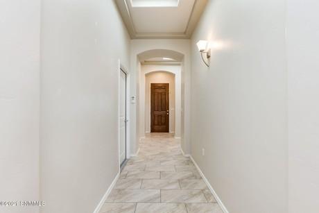Beautiful Home on Corner Lot with Open Floor Plan and High Ceilings. Gated Entry way. Organ Mountain Views from Dining area. Upgraded Open Kitchen with Granite Counters, Gas Cooktop, Microwave, Oven, Breakfast Bar and Pantry. Family Room has Tuscan Finish Trey Ceiling. Four Bedrooms, Two and One Half Baths with 2115 Square Feet. Built in 2016. Split Bedroom Plan with Jack ”n Jill, includes Full Bath, Two Separate Sink areas. Large Master Bedroom with Trey Ceiling, Upgraded Master Bath with Wheelchair access to Large Shower, Granite Counters, Two Walk-In Closets and Exterior Door to Covered Patio incl. Mister. Natural Gas BBQ Grill Conveys. Most Doorways are ADA Accessible. Tile Floors throughout the home. 95% of Lighting is LED. Refrigerated A/C, Water Softener with whole house filter. Tankless Hot Water Heater. Low Maintenance Landscaping Front & Back with Drip Irrigation System.