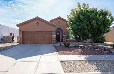 This beautiful Southwestern style home is located near Red Hawk Golf Course in popular Metro Verde and offers three Bedrooms, two bath + office or flex room, very open floor-plan with spacious kitchen offering all the upgrades and amenities you could want such as pantry, granite counter tops, custom built cabinets, upgraded appliances, and tile accents. Kitchen opens to spacious living room with rock fireplace, lots of windows and a partial view of the Organ Mountains. Tile slate floors, a formal dining area, plus breakfast nook area adds to the desirable comfort of this beautiful home.