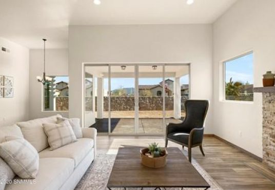 This captivating, brand new, custom built home with modern charm offers stainless steel appliances, two built in pergolas- one in the front and the other in the backyard, a finished two car garage and many other features. The tiled great room has a beautiful fireplace, as well as enormous double sliding glass doors that lead to the back patio. Enjoy the granite island, and counter tops. You will love the split floor plan, spacious master bedroom featuring large windows, and double sinks in the master bath with a large walk-in closet. It is located in close proximity to one of the top Golf Courses in New Mexico, and is surrounded by parks, playgrounds, basketball and tennis courts! This impeccable 4 bedroom, 2 bath home is not going to last- schedule your showing today before it’s gone!
