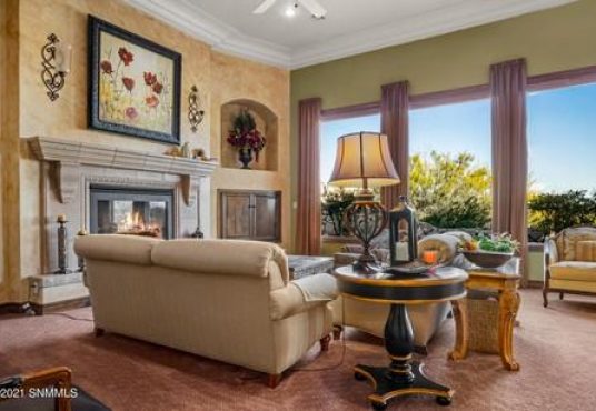 Located in the stunning Butterfield Ridge of Picacho Hills, this home has unobstructed views of the valley, Picacho Peak, and the Organ Mountains. This home was crafted with detail and quality, with spacious living areas and a well-designed floor-plan, chef’s kitchen, and the special feature of this home, a 725 square foot basement. The luxury features sure to take your breath away are the 14′ ceilings in the living room and 12′ ceilings in the dining room and kitchen. The use of faux finish painting and crown molding also add to the opulence of this beautiful property and its design lends itself to an abundance of natural lighting, guest accommodations, and entertaining. This home boasts amazing outdoor living, with a kitchen, fireplace, fire pit, and hot tub. All of the beautiful design work and features of this home must be seen in person to be appreciated.